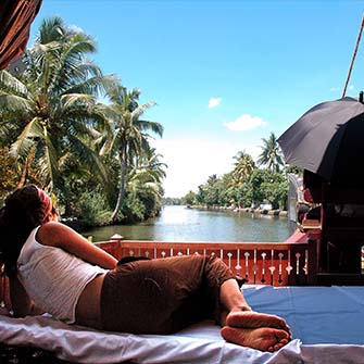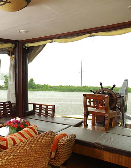 Our spacious sun deck is perfect for relaxing, offering breathtaking views of the backwaters and serene surroundings.